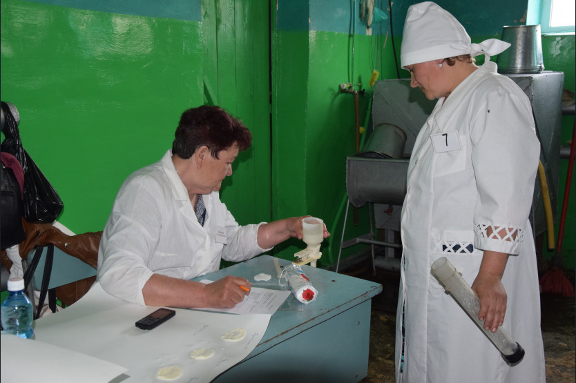 После этого С.В. Краузе, главный специалист управления сельского хозяйства, ознакомил конкурсантов с планом состязания. Для всех - теоретические вопросы и практические упражнения по специальности. Несмотря на то, что многие женщины участвуют не первый год, некоторые из них очень волновались. Практические задания для операторов традиционные: разборка-сборка доильного аппарата и собственно процесс доения. Основные критерии оценки - скорость и правильность выполнения операций, чистота надоенного молока. Кроме процесса дойки, оценивалась санитарная подготовка участника конкурса, вес и качество надоенного молока. У техников наивысшим баллом оценивался процесс осеменения, а также журнал отчетности.