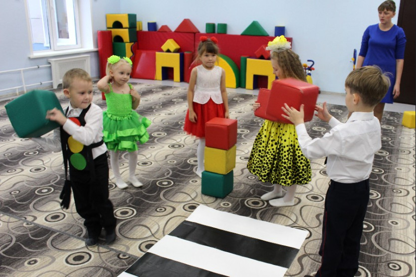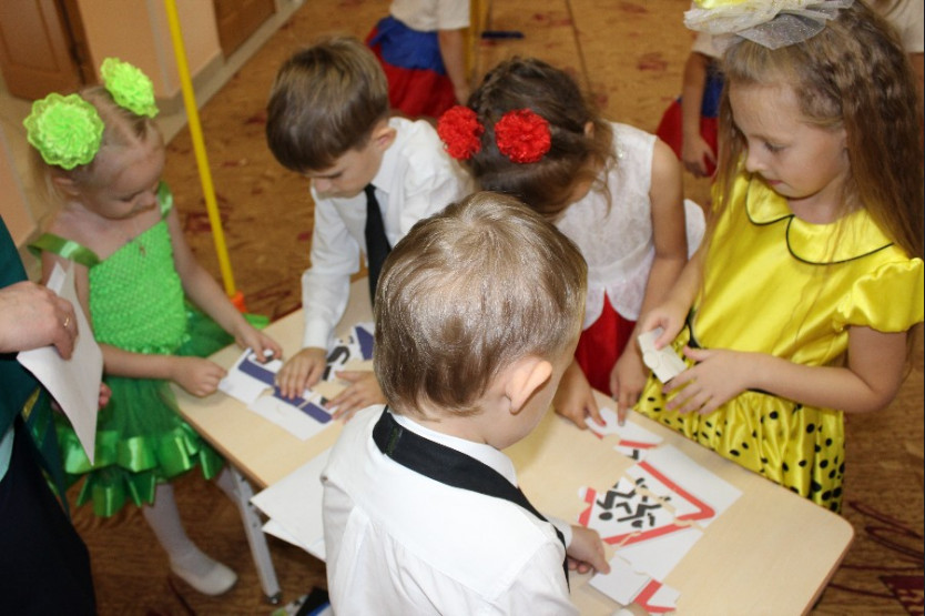 Всё началось с того, что мультгероиня сериала «Фиксики» - Симка, ехала к своим друзьям, но заблудилась. Попала в какой-то странный город, в котором нет знаков дорожного движения, нет пешеходных переходов и светофоров, попала в аварию, в результате чего у неё сломался вездекат. Чтобы его починить, понадобились запчасти. Оказавшиеся на флэшмобе команды с удовольствием предложили свою помощь. Флэшмобовцы получили маршрутные листы, поразмялись, станцевали и вместе со своими воспитателями отправились в путешествие, в страну дорожных наук, по 6 маршрутам. На станции «Дорожные знаки» юные пешеходы разгадали загадки, выбрали нужный знак и рассказали, что он означает. Объехав все кегли на самокате, по очереди, все участники команд без проблем прошли станцию «Водитель». Станция «Автокресло» помогла участникам команд вспомнить правила пассажиров и пользования удерживающим устройством. Они по очереди, добегали до автокресла, садились в него, пристегивались - отстегивались и передавали эстафету следующему. На станции «Автобус» ребята рассказали правила пассажиров общественного транспорта. Собрав из разрезанных картинок (пазлов) дорожный знак и правильно его назвав «дошколята» оставили позади ещё одну станцию («Собери дорожный знак»). На станции «Пешеход» командам предстояло разложить разметку из кубиков, сделать светофор и совершить движение паровозиком, оббежав конструкцию. В конце путешествия «флэшмобовцев», на «конечной» станции, каждая команда получила запчасть для вездеката и передала её Симке. Юные «спасатели» правильно выполнили все задания, получили знаки дорожного движения, которые Симка расставила в городе, после чего починила свой вездекат и нашла своих друзей.