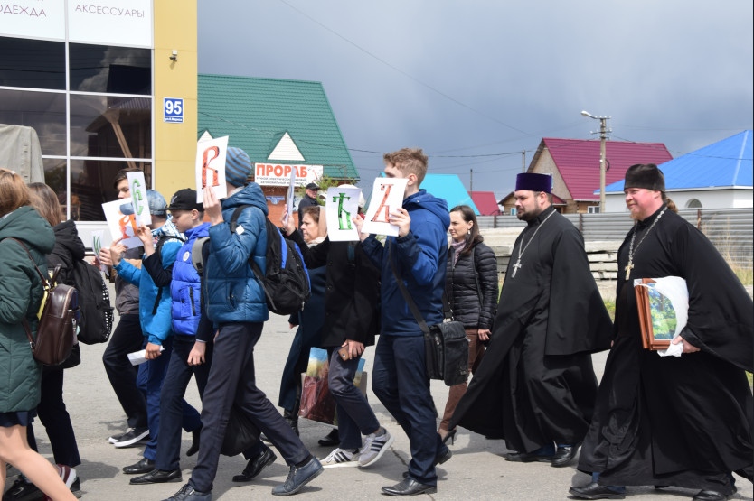 На центральной площади участников шествия приветствовал протоирей Дмитрий Бабкин. В рамках празднования Дня славянской письменности и культуры состоялся конкурс чтецов и исполнителей песен по данной тематике. Лауреатом конкурса стали воспитанники ЦДОД, на I месте - Медицинский колледж, на II – БФ НОККиИ, III место досталось учащимся Старощербаковской школы, остальные участники шествия получили дипломы конкурса.