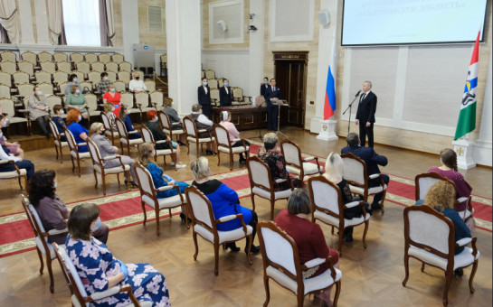 Торжественная церемония вручения знаков отличия «За материнскую доблесть» состоялась в Правительстве региона 27 ноября – в канун Международного дня матери. Почетные знаки 37 многодетным матерям вручили Губернатор Новосибирской области Андрей Травников и Председатель Законодательного Собрания Новосибирской области Андрей Шимкив.