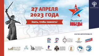 27 апреля 2023 года состоится Международный исторический диктант на тему событий Великой Отечественной войны – «Диктант Победы». Он пройдет в пятый раз на площадках по всей России, за рубежом, а также онлайн на сайте диктантпобеды.рф.
