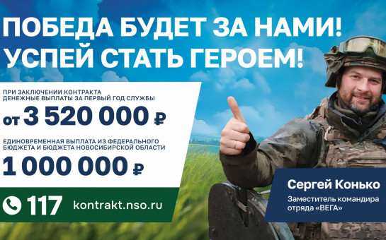 На все вопросы по заключению контракта ответят оперативно в любом военном комиссариате в районах Новосибирской области. Подробнее о воинской службе по контракту можно узнать по бесплатному номеру «горячей линии» 117 и на официальном сайте набора https://kontrakt.nso.ru/ .