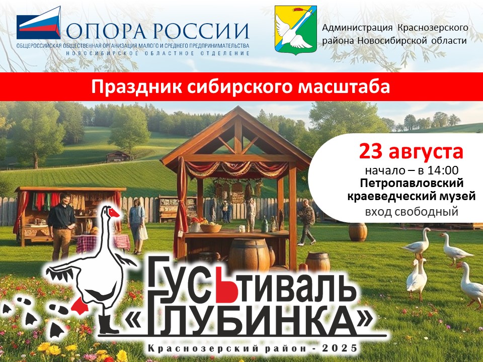Новосибирское областное отделение Общероссийской общественной организации малого и среднего предпринимательства «ОПОРА РОССИИ» при поддержке Администрации Краснозёрского района организует Слёт предпринимателей в Краснозерском районе Новосибирской области «Открой глубинку», с целью содействия развитию сельских территорий за счет активизации предпринимательского импульса, повышения социальной и экономической активности региона, на основе местных ресурсов территории и лучших традиций отечественного предпринимательства.
